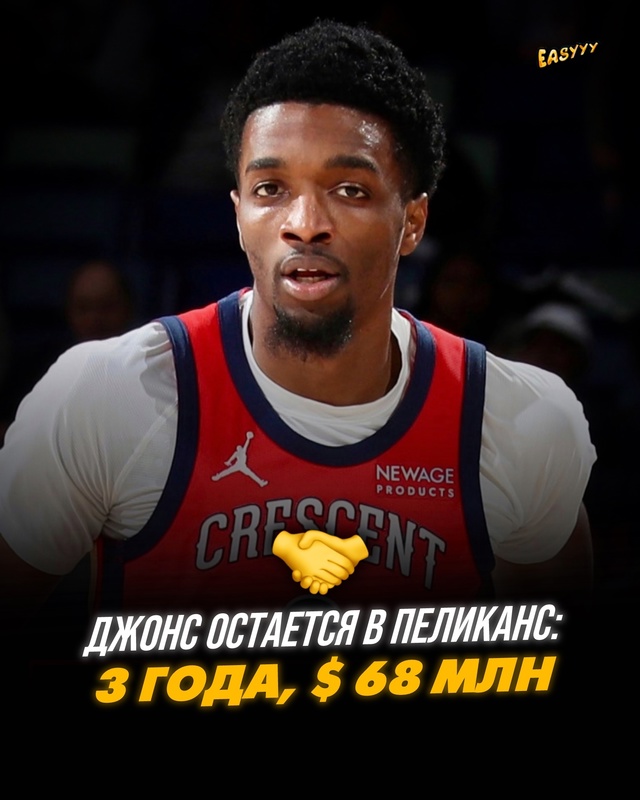 По сообщению ESPN, клуб Национальной баскетбольной ассоциации «Нью-Орлеан Пеликанс» и форвард Герберт Джонс достигли соглашения о продлении действующего контракта на три года. Стоимость нового соглашения составляет 68 миллионов долларов. С учетом этого продления, общий срок контракта Джонса теперь охватывает пять лет, а его суммарная стоимость достигает 97 миллионов долларов. В контракт также включена опция игрока на сезон 2029–30.