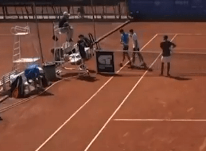 Обе теннисистки пожали руку главному судье, пока их словесная перепалка продолжалась.
